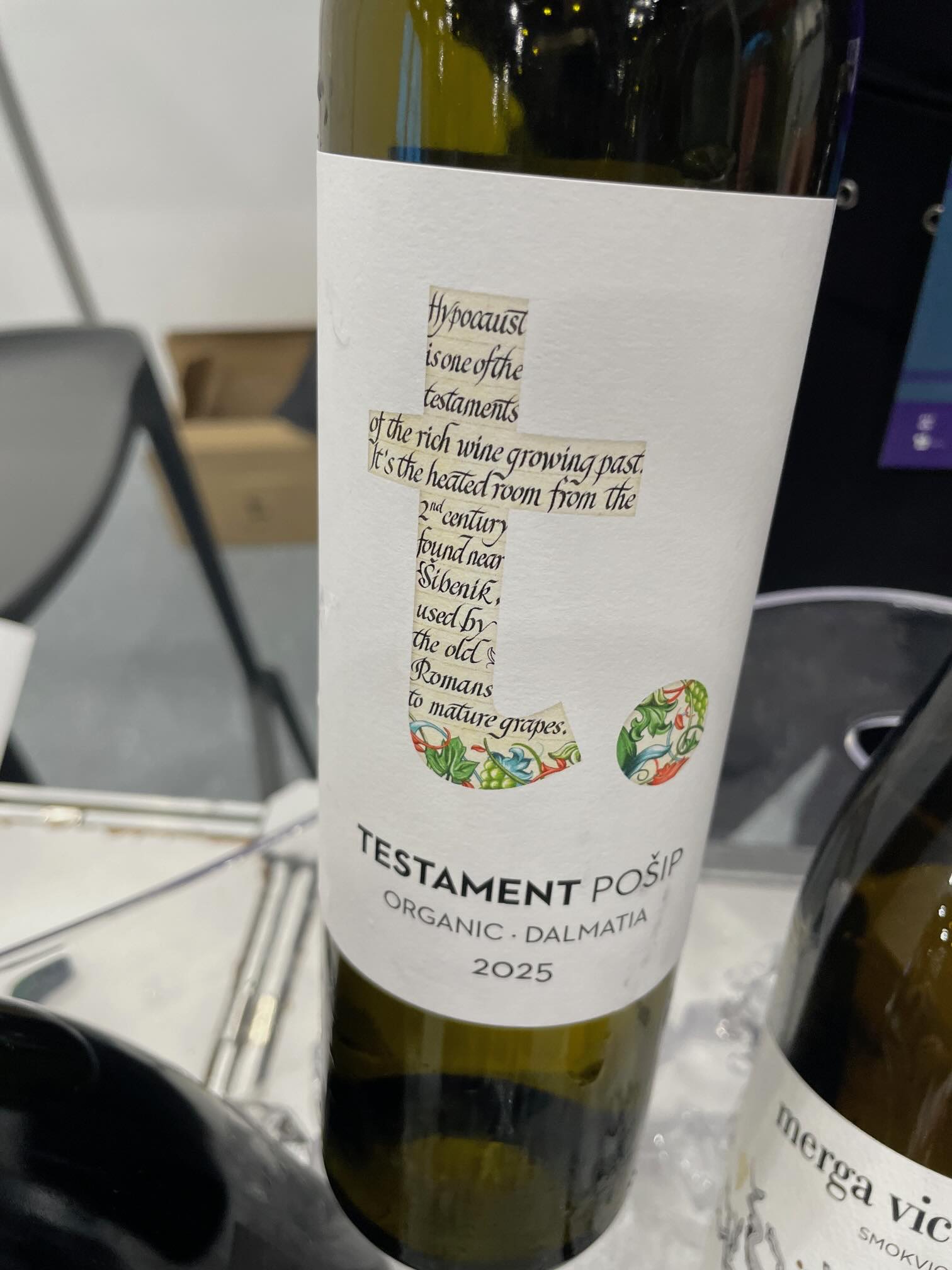 Ugyan a leghíresebb, tengerre néző dűlőket felvonultató Pelješac-félszigetről sajnos nem érkezett kiállító – amit erősen sajnáltunk, mert a zseniális grk szőlőfajta borainak nagy rajongói vagyunk –, a Hvar-szigeteki szövetkezeti pince (PZ Svirče) borait pedig leginkább helyben fogyasztásra érdemes ajánlani – a pošip de luxe boruk persze vállalható, de már az alapoknak is annak kellene lenniük a komolyanvehetőséghez, és érdemes megkóstolni a bogdanuša nevű, csak ott termő fajta borát is –, Korčula szigetén és Šibenik mellett Jadrtovacban szenzációs fehérek készülnek. A Testament pincészet utóbbi helyről jön: alapbora, a csak egy T-betűt a címkén szerepeltető pošip a jólihatóság mintapéldája.